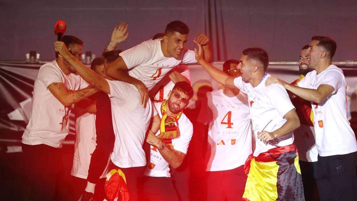 决赛结束后,罗德里和队友们回到西班牙,参加了足协组织的盛大夺冠庆典。现场涌入了数万名球迷,罗德里很是兴奋。在狂热的氛围刺激下,罗德里决定给英格兰人狠狠的回击。